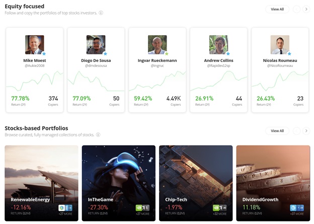 These are regularly rebalanced by eToro and you will find a range of curated collections and themes. Alternatively, you might consider allocating some of your stock investing funds to eToro’s standout feature: Copy Trading. This feature enables people at all skill levels to mirror the trading positions of seasoned investors.