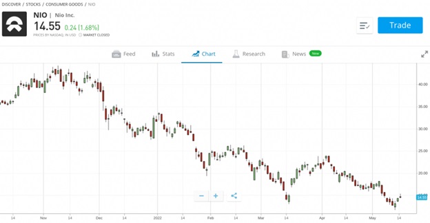 Nio started 2021 trading at around $50 and by June of the same year had reached its all-time high of $62. In November 2021, Nio delivered 270% more EVs than the same time in 2020. However, by the end of 2021, developments in China caused Nio stock to fall. The country’s Finance Ministry announced that NEV subsidies will be slashed by 30% in 2022.