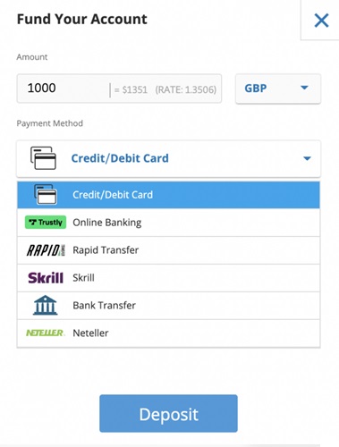 The latter is inclusive of Neteller, PayPal, and Skrill. After entering your details, confirm your deposit and eToro will fund your account accordingly.