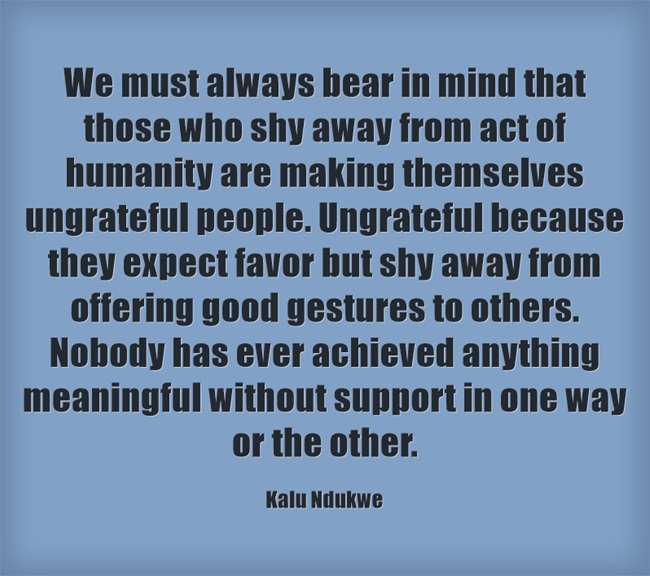 My point is that wherever we may be, may we always bear in mind that those who shy away from act of humanity are making themselves ungrateful people. Ungrateful because they expect favor from others but shy away from offering good gestures to other people. Isn’t that unfair? And may we please remember that if we have any personal reason why we’re unable to do something nice for someone, may we find a polite way to tell the person to try elsewhere.