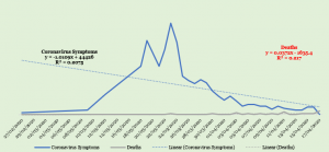 Exhibit 4: Linear Growth of Deaths and Public Interest in Symptoms of the Virus