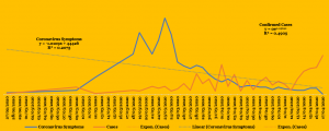 Exhibit 3: Linear and Exponential Growths of Cases and Public Interest in Symptoms of the Virus