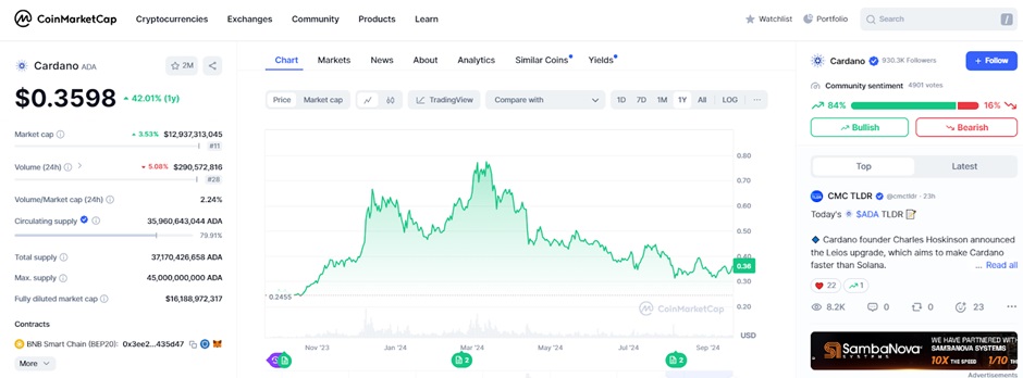 Cardano’s native token, ADA, is known as a “sleeper coin” due to its lack of movement, even during large market activity. This can be further backed by the lack of price movements ADA had this year, even when the market was at all-time highs.