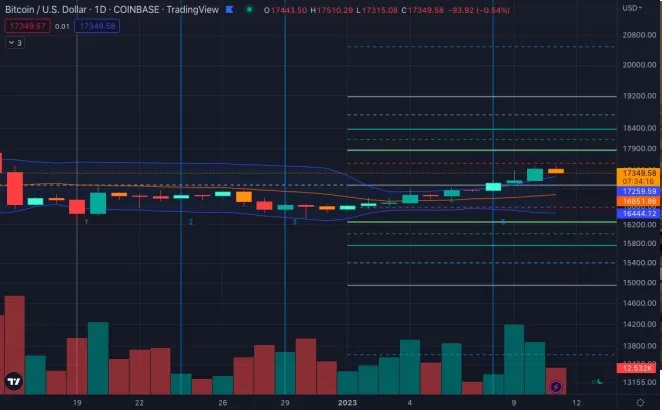 $BTC breaks out above BB lines as we witness a small rally. Fibonacci target: $17574 and Fibonacci stop-loss: $17065.