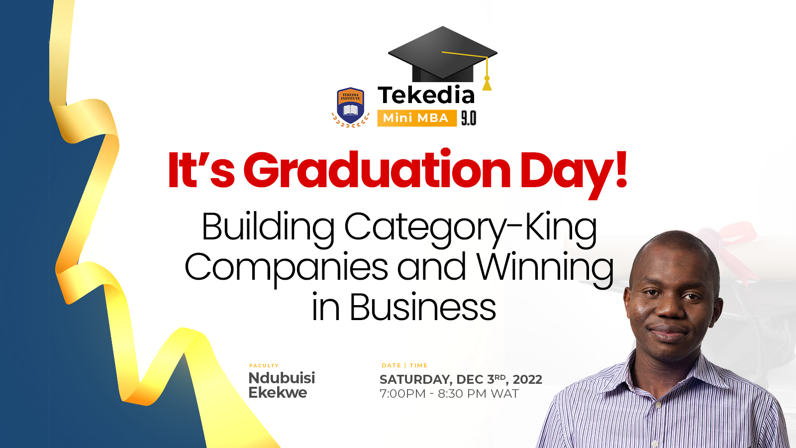 In this graduation ceremony, Lead Faculty of Tekedia Institute, Ndubuisi Ekekwe, will deliver a graduation message titled “Building Category-King Companies and Winning in Business”. Here are the details:
