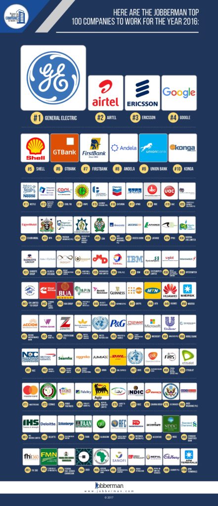 GE is the best company to work for in Nigeria followed b Airtel, Ericsson and Google, according to Jobberman.