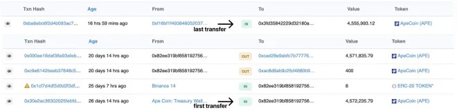 Address 0xbb2265 withdrawn 161k $APE ($576k) from the staking smart contract. Afterwards, these coins were transferred to giant whale address 0x307412, Its total wealth is $129M, of which $77M is held in ERC20 tokens. 4.5M $APE ($16M) has been transferred from address 0xf16bf1 to 0x3FD358.