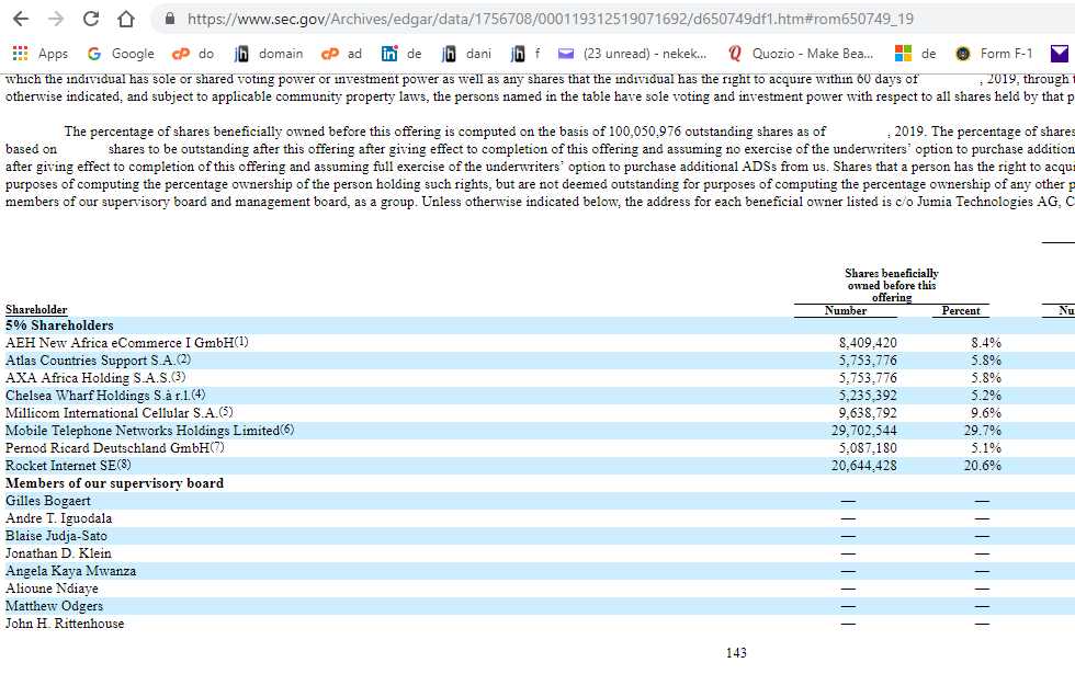 Before listing on the NYSE, Jumia had 100,050,976 outstanding shares. The breakdown is as follows: