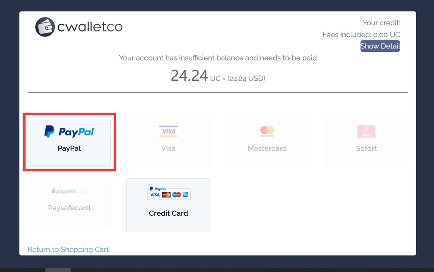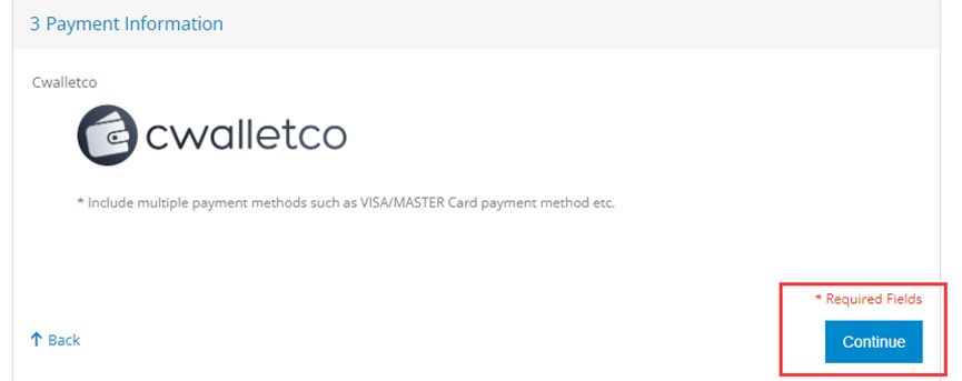 - Please select “CWALLETCO” in this step, then click “Continue”.
