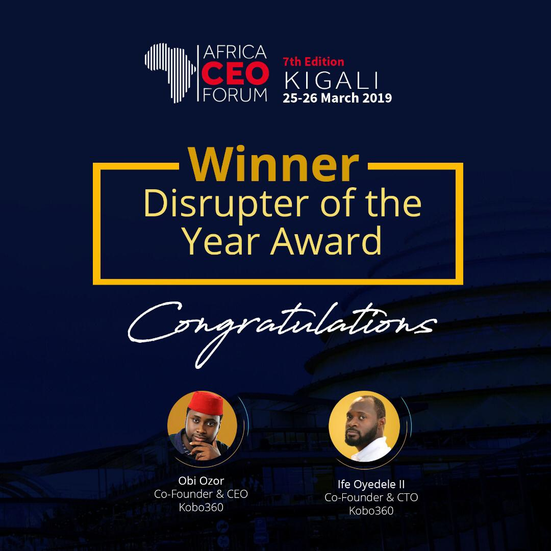 Africa’s pioneer leading digital logistics innovator, Kobo360, wins Africa CEO Forum “Disrupter of the Year” Award. To all our team members especially KoboSquad Commandants, Obi Ozor and Ife Oyedele II, I extend my BIG congratulations. The mission of fixing Africa’s logistics frictions via Kobo360’s G-LOS (global logistics operating system) is a huge one for our continent. Kobo360 came on top of Jumia, Africa’s Talking and others to win the award.