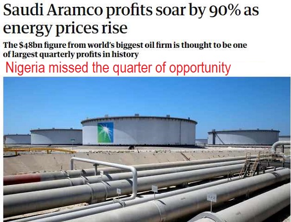 As nearly every major nation in the oil world was celebrating, Nigeria was in pain. Due to oil theft, leakages here and there, etc, we could not exploit the moment which Russia-Ukraine conflict presented to us. Rather, instead of benefitting as an oil exporter, on high oil prices, our currency and economy are rattled. Simply, Nigeria missed the quarter of opportunity.