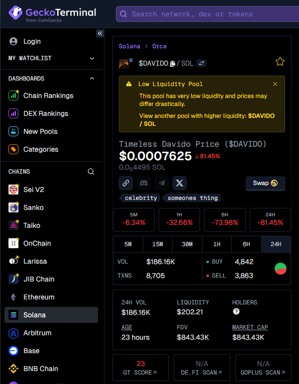Nigerian mega popular singer Davido released a memecoin yesterday named $DAVIDO