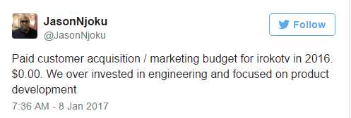 iROKOtv can see 2000% growth in 2017 if it can pay for MTN to remove metering in its platform. Then, the only cost becomes the subscription fee. Of course, the subscription cost may not cover any contract iROKOtv will sign with MTN.
