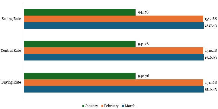 Exhibit 1: Average rate of Naira to Dollar (US) between January 1, and March 27, 2024