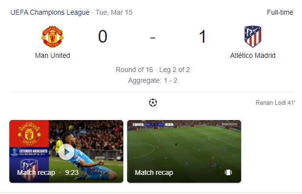 ManU was knocked out of the current Champions League by Atletico Madrid.