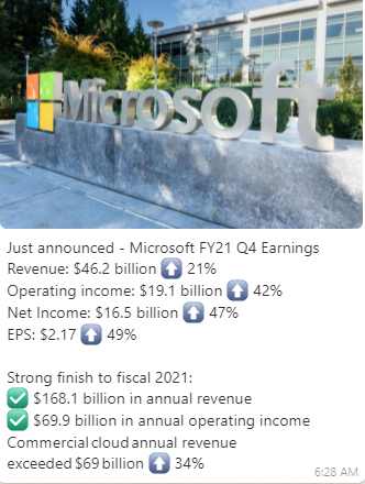 Microsoft has joined Tesla and Apple whose revenue reports demolished Wall Street estimates.