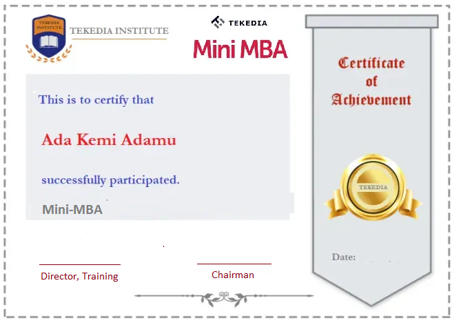 Our Owerri (Nigeria) team has created the certificate sample for Tekedia Mini-MBA. If you are enrolled in the first edition, please update your profile in Tekedia Digital Board with the name as you want it on the certificate. Have a great weekend, Good People. Registration continues for the second batch here.