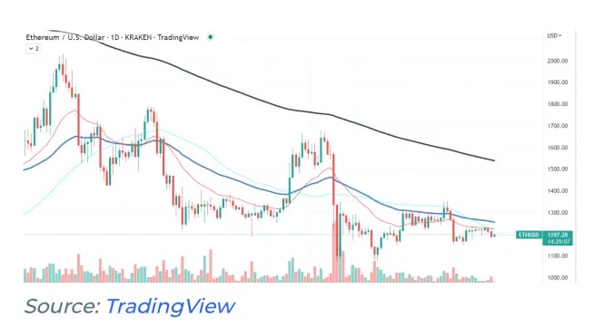 At press time, Ethereum is trading at $1,194, deliberately trying to hold the $1,200 price threshold, which acts as a platform for any move toward the next resistance.