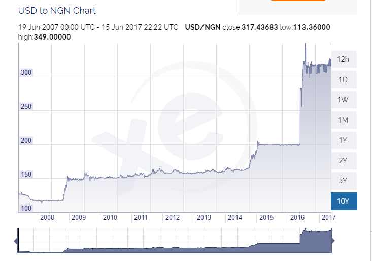 We will do a good extrapolation to determine the total profits by the telecom companies. After doing that, we will convert the Naira to US dollars. To take into considerations, the fluctuation of the Naira to USD, we will use the plot below. We need to get the numbers in US dollars to help non-Nigerians appreciate the content.