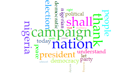 “You decided to place your trust in the democratic vision of a Nigeria founded on shared prosperity and one nurtured by the ideals of unity, justice, peace and tolerance. “Renewed hope has dawned in Nigeria,” is his nodal point statement that pinpoints the importance of appreciating the competitiveness of the election and the need for collectively building a sustainable democracy. The 791-word speech also entails predicational strategies premised on his agenda of renewed hope for Nigerians (see Exhibit 3).