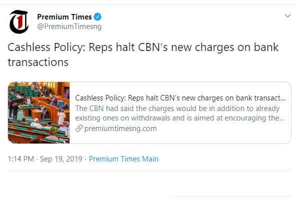 The CBN had announced that from Wednesday, September 18, certain cash deposits and withdrawals from individual bank accounts are to attract additional charges.