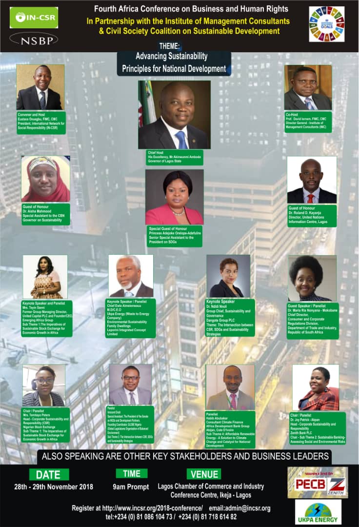 I am happy to announce that the International Network for Corporate Social Responsibility (IN-CSR) (Africa Chapter) would honour me with “Sustainability Inventor of the Year”. The Governor of Lagos State, Mr. Akinwunmi Ambode, would address the event which is scheduled as follows: