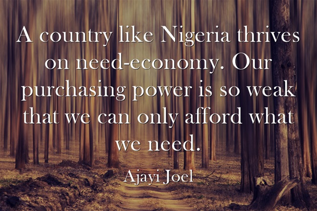 The need-economy is a nice place to build a business, when even if you are not a core professional, you can still survive. A country like Nigeria thrives on need-economy. Our purchasing power is so weak that we can only afford what we need. I didn’t study economics but I will analyze some things right here.