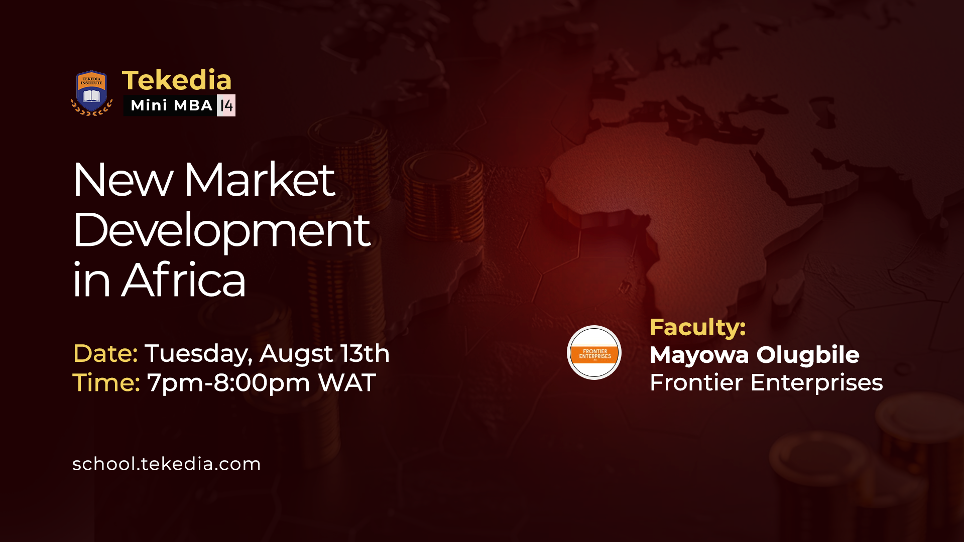 Tue, Aug 13 | 7pm-8pm WAT | New Market Development in Africa – Mayowa Olugbile, Frontier Enterprises.