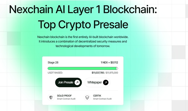 Coin presale momentum continues to build around Nexchain AI as the project pushes deeper into its final stages. As of press time, coin presale Stage 28 has already raised $11,037,785 out of the targeted $11,975,000. Over 90% of this allocation has been completed, leaving limited time for investors to participate before the price increases again. With growing accumulation and investor interest, Nexchain AI’s structured phases have consistently hit their goals, moving swiftly through earlier rounds. The current price of 1 NEX token in Stage 28 stands at $0.112, and the demand indicates this phase may close imminently.