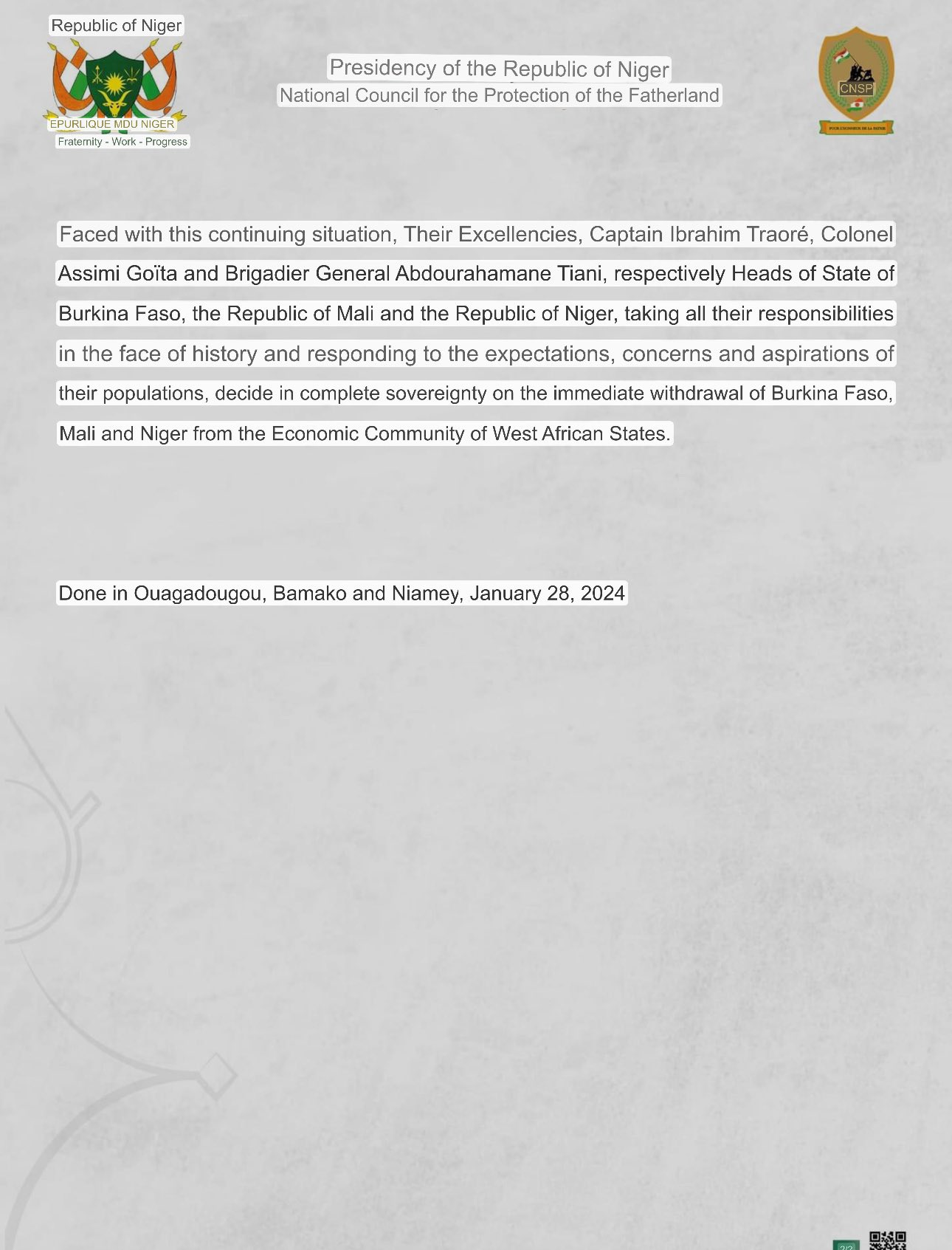 The statement, issued by the military junta that seized power in Niger last year, and endorsed by the transitional authorities in Mali and Burkina Faso, who also came to power through coups, cited “irreconcilable differences” with the other members of ECOWAS as the main reason for their withdrawal.
