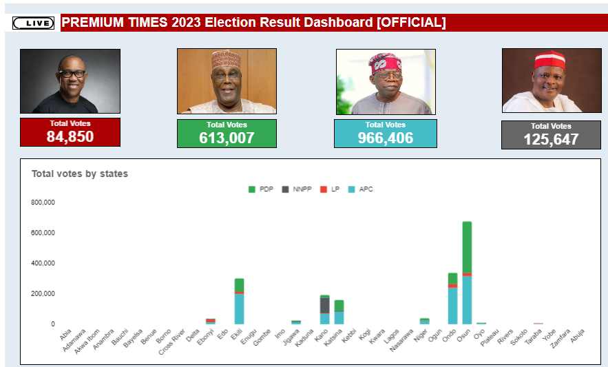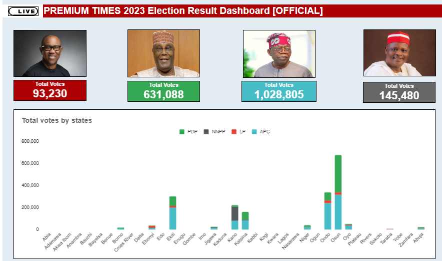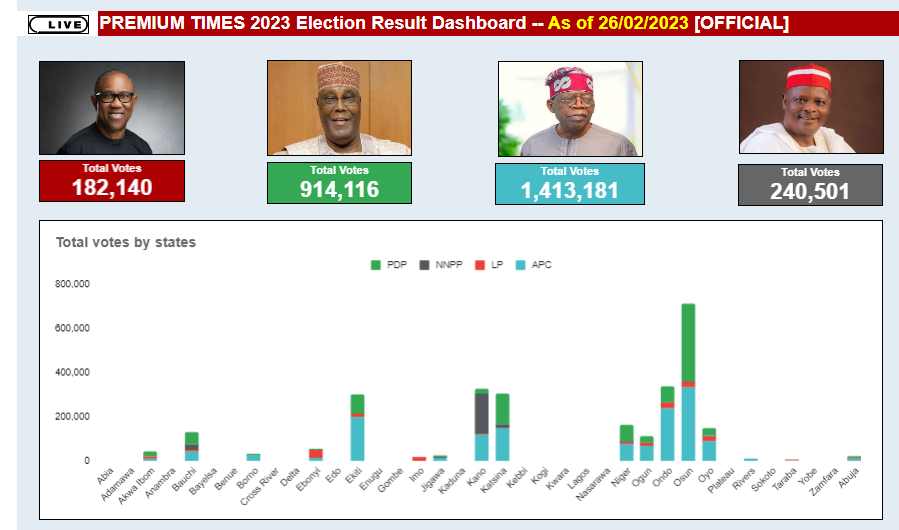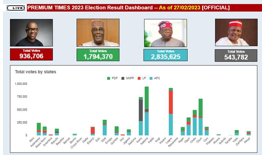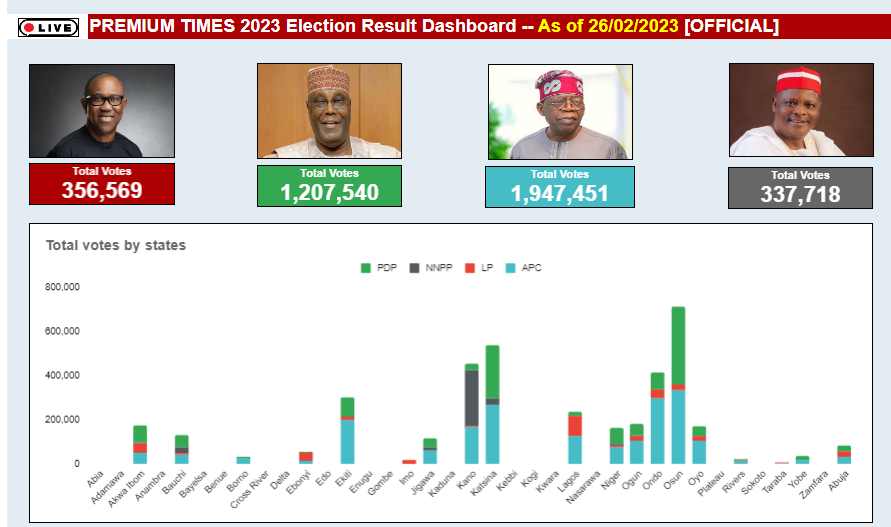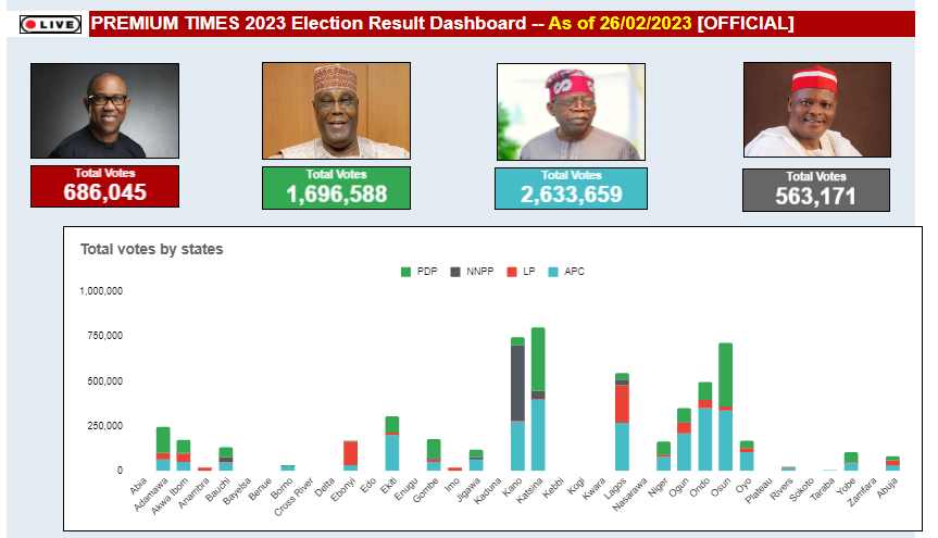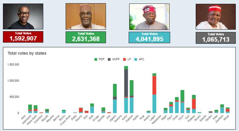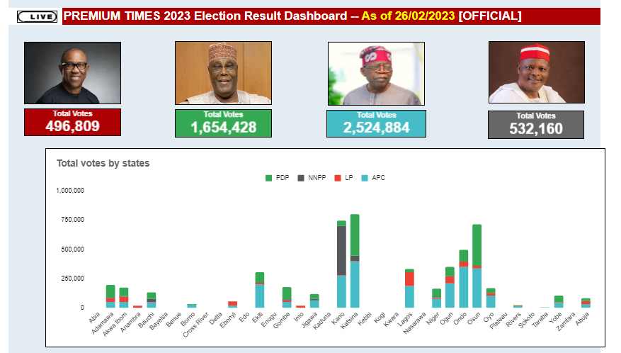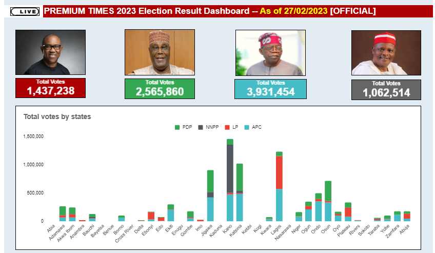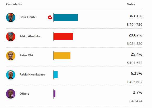 Here is the final result of Nigeria’s 2023 Presidential election as called by INEC. Based on this result, Senator Bola Tinubu of APC will be declared president-elect any moment from now. But understand that INEC, the electoral umpire, is struggling to navigate this declaration considering the avalanche of complaints from local and international organizations on the conduct of the election.