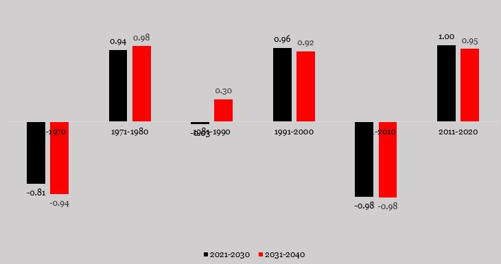 Exhibit 3: Effect of migration rates of the previous decades on the incoming decades