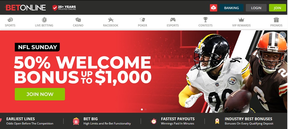 #1. BetOnline – Strong Sportsbook With A 50% Match Bonus Of Up To $1000