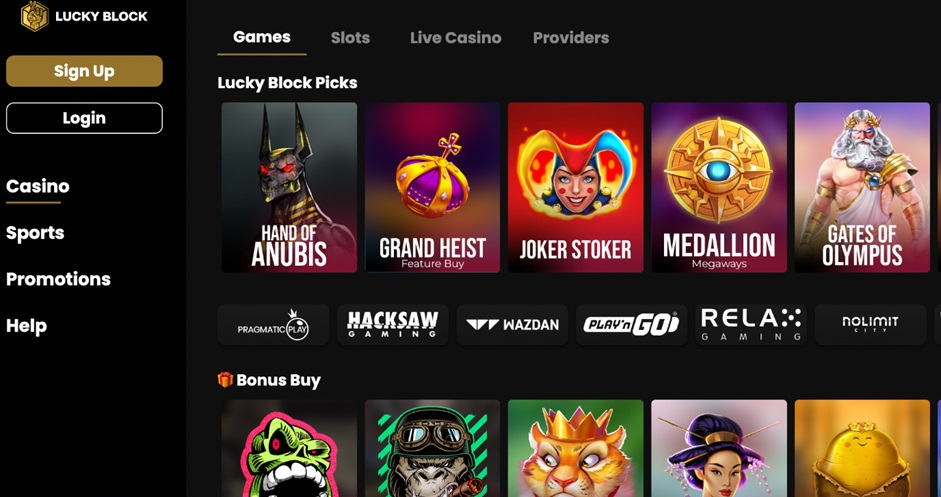 #6. Lucky Block – 100% Anonymous Casino With Strong Offshore Sportsbooks