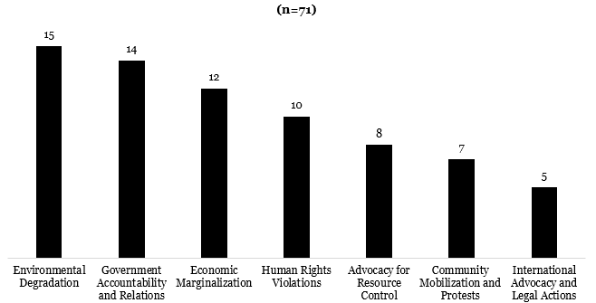 Exhibit 1: Frequency of views regarding social, environmental and economic justice in Ogoniland between 1990 and 2025