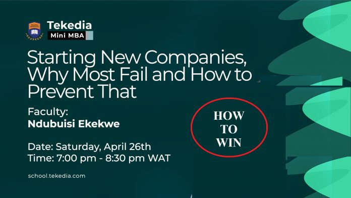 Sat, Apr 26 | 7pm-8.30pm WAT | Starting New Companies, Why Most Fail and How to Prevent That – Ndubuisi Ekekwe | Zoom link https://school.tekedia.com/course/mmba17/