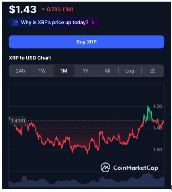 On the other hand, XRP has slightly dropped over the past month, recording a minimal dip of about 0.78%.