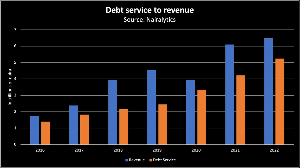 The report reveals a total debt service of N5.2 trillion in the first 11 months of 2022 out of a total revenue of N6.49 trillion.