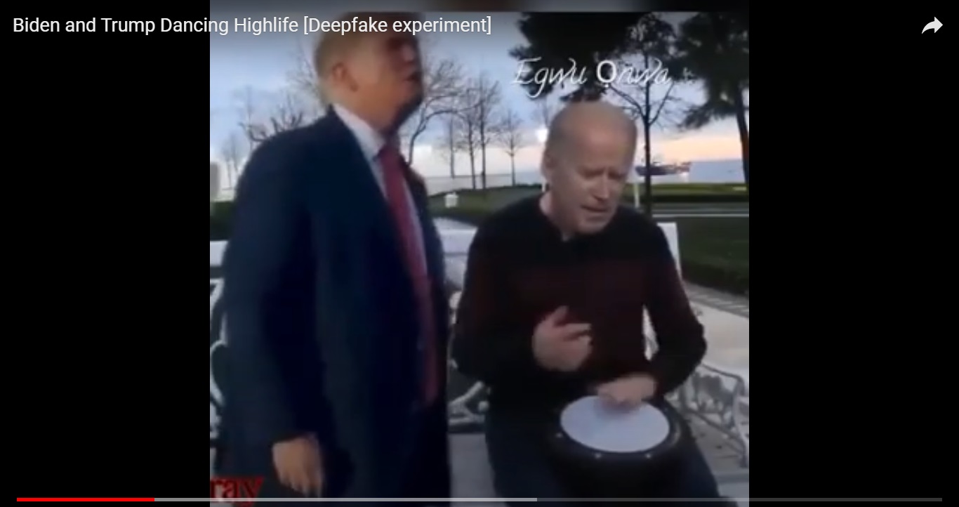 For research and academic purposes on the power of emerging deep fake computational systems. It turns out that anyone can do this now. It could have cost the guy $40 to do this. Give him $10,000 and a judge will struggle to rule on which is real or fake. But of course, highlife brings the fun to Mazi “Biden” and Mazi “Trump” here. Brace for a stochastic future!