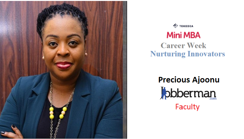 A master’s degree graduate of the University of Aberdeen, she heads the Youth Engagement & Learning unit in the industry-king, and digital recruiter Jobberman. Precious Ajoonu will teach during Tekedia Mini-MBA Career Week, scheduled Nov 2-7 2020. This career week is not designed for finding jobs. Rather, it is structured to TRANSFORM workers, founders & entrepreneurs into business leaders and champions of innovation in their companies.