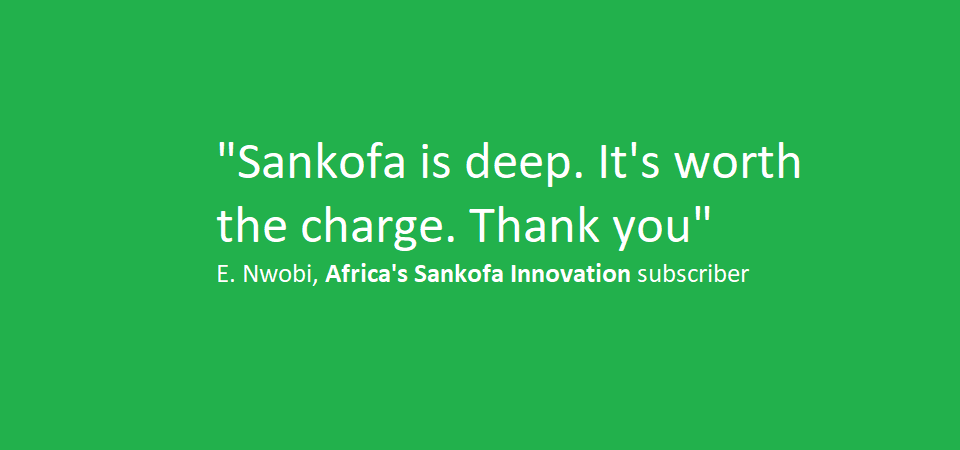 This is a conversation with a subscriber on my new book – Africa’s Sankofa Innovation (subscribe here). This book is helping many people to think critically on how they execute their African business strategies. This is our reader’s conclusion: “Sankofa is deep. It’s worth the charge. Thank you”
