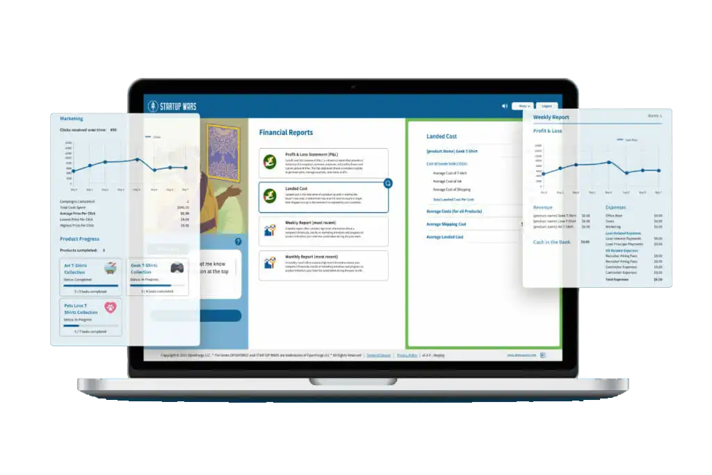 Startup Wars is a next-gen simulation software designed for business & entrepreneurship education. It lets students run a virtual startup simulator, where they pitch, plan, and manage ventures from start to finish. They practice entrepreneurship, sharpen business strategies, and develop resilience as their simulated company navigates market ups and downs.
