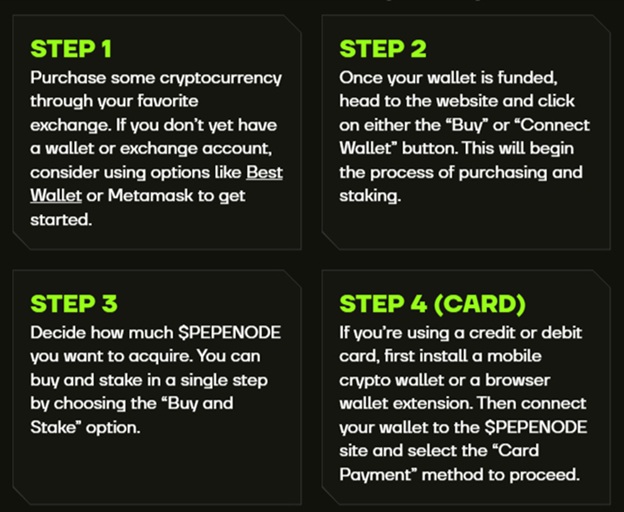Those wishing to join the presale early and buy PEPENODE tokens at a lower price can join the ICO now and purchase with crypto or a card.