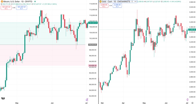 An HSBC analyst thinks that “There is a Trump risk premium built into the dollar today.” Such an unstable climate pushes investors to alternative assets, like gold and Bitcoin. The price of Bitcoin has rebounded to over $120,000, buoyed by an influx into crypto ETFs ($1.7 billion in June) and the price of gold reaches almost $3,400, boosted by currency volatility.