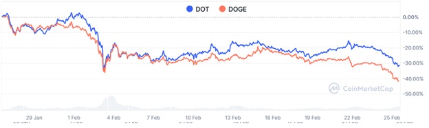 Source: Polkadot Vs. Dogecoin Price Comparison, CoinMarketCap