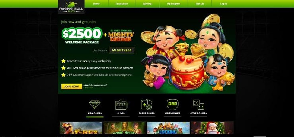 When you sign up at Raging Bull Casino, you get a fantastic welcome bonus spread out over your first three deposits of up to $2,500, along with 50 free spins on a popular slot game.