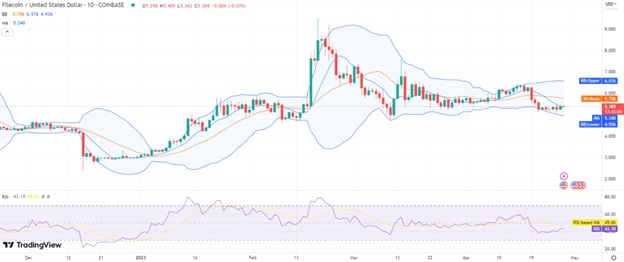 The cryptoverse is abuzz with news of Filecoin (FIL) consolidating at $5.38, with the bearish momentum not posing a significant threat at the moment. The FIL/USD pair has been consolidating since April 22, 2023, and while selling pressure has caused the price to fall, it is still holding steady.