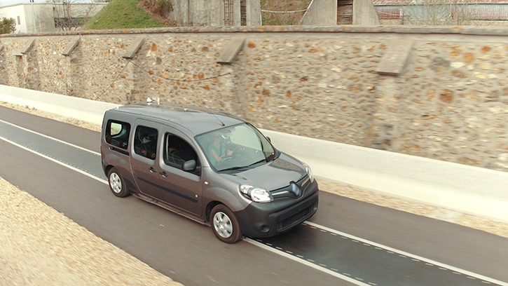 Qualcomm built a 100 meter track in France, where a Renault Kangoo EV was charged at up to 20 kilowatts while on the move at highway speeds. The tech promises to be able to charge a suitably equipped vehicle while moving in either direction. The track used for the test had been prepared with the source part embedded under the tarmac while the receiver was integrated into the car.