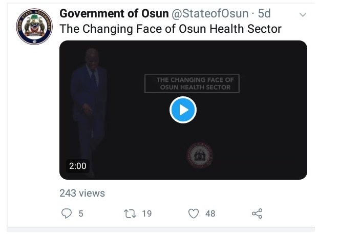 Ajetunmobi Umar Olansile: 3. Governor’s handle has 33k followers. Who are they? Are there not up to half Osun active members on this handle? Why just one video? Couldn’t the team have a thread of his discussions? How many people would watch the video? Can you see the number of comments on the video? 8? For a whole Governor of a state? Is that a pass for a policy-driven lecture? The publisher is not your opponent. He is only calling your attention to media integration and the need for convergence! Check Twitter handles of some Governors, and see how matters like this are discussed.