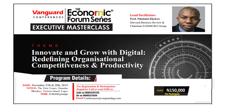 It’s official – Vanguard Executive Masterclass will be facilitated by yours truly, Prof Ndubuisi Ekekwe. I invite staff and leaders of startups, SMEs, large firms and public institutions to join me on 27 & 28 Nov, 2019 in Lagos as we examine markets, strategies and how to unlock opportunities across sectors. I have done this … Continue reading [Register ] Vanguard Executive Masterclass by Prof Ndubuisi Ekekwe